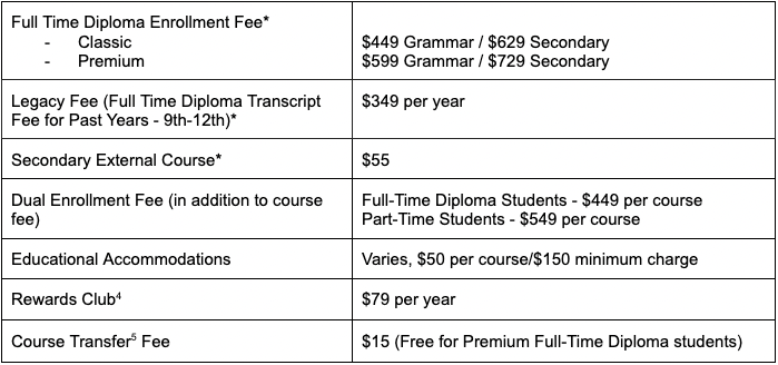 1. | Live, Live Audit, and Self-Paced Archive course registrations completed during the payment plan enrollment period between December 1 and July 31 are eligible for the monthly payment plan. Extracurriculars, Self-Paced courses, VSA Clubs, and summer classes are excluded. |